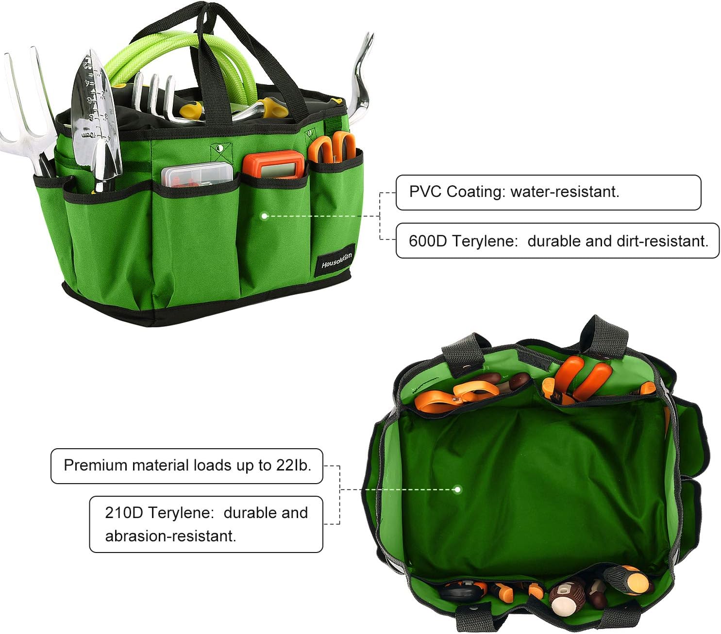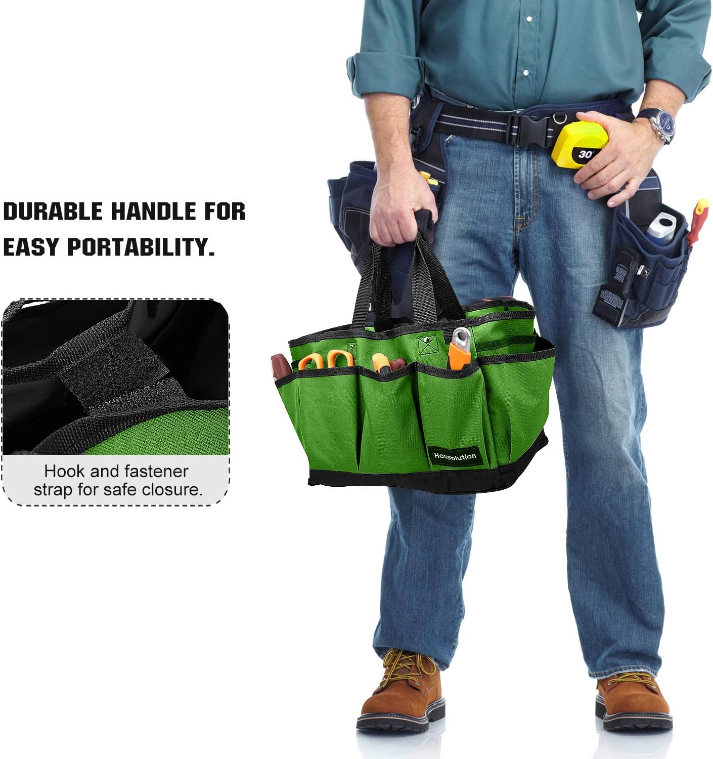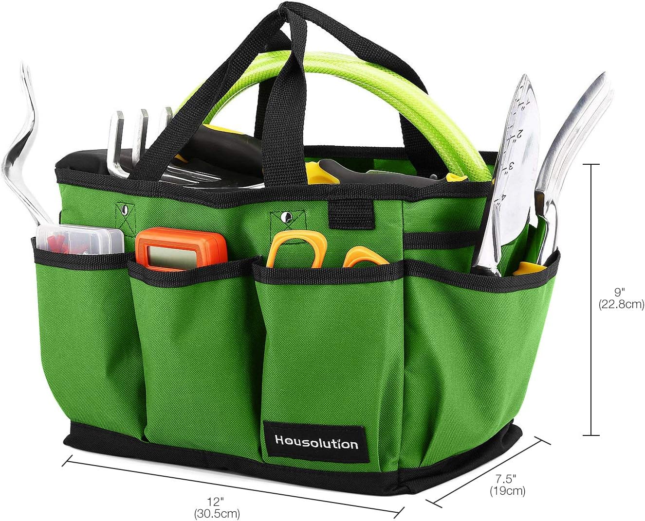 Housolution Gardening Tote Bag, Deluxe Garden Tool Storage Bag and Home Organizer with Pockets, Wear-resistant & Reusable, 12 Inch, Green