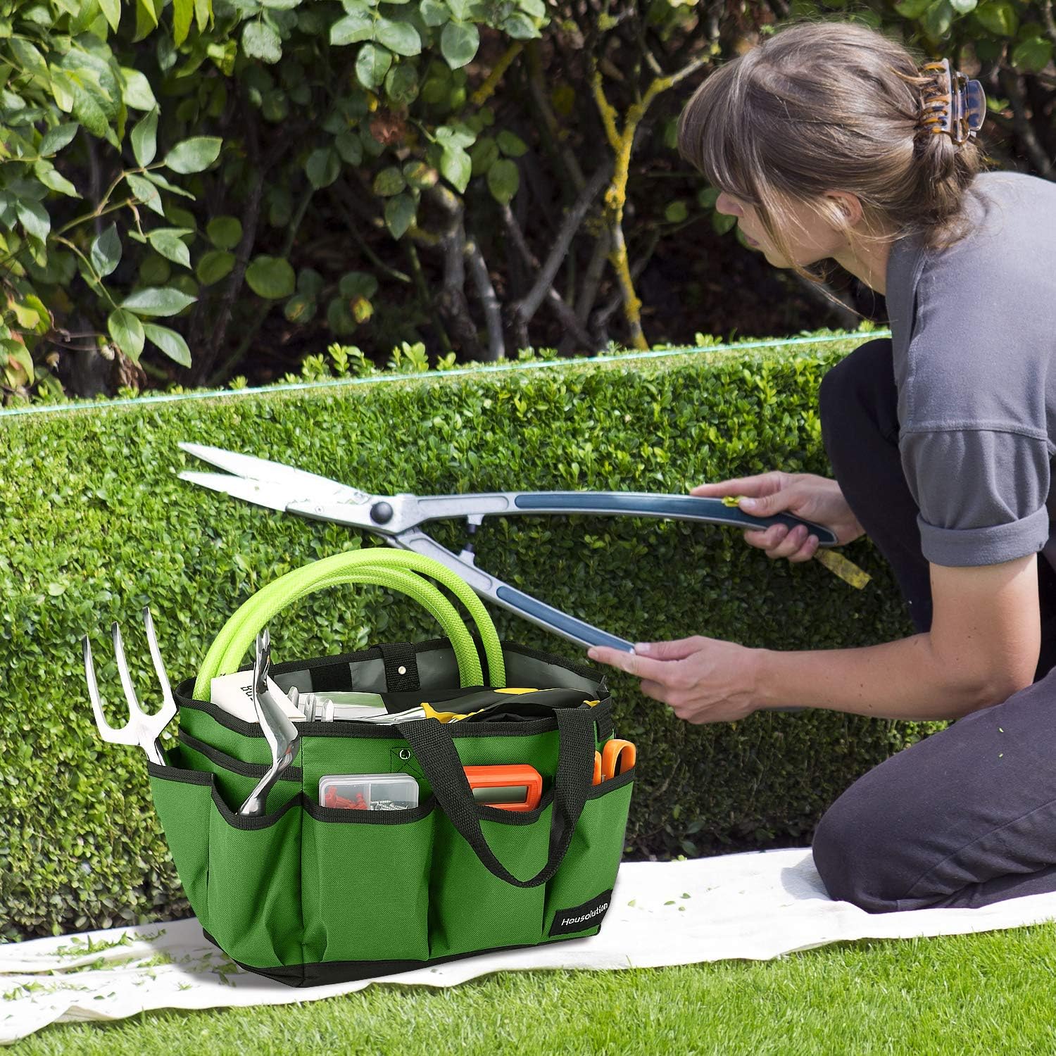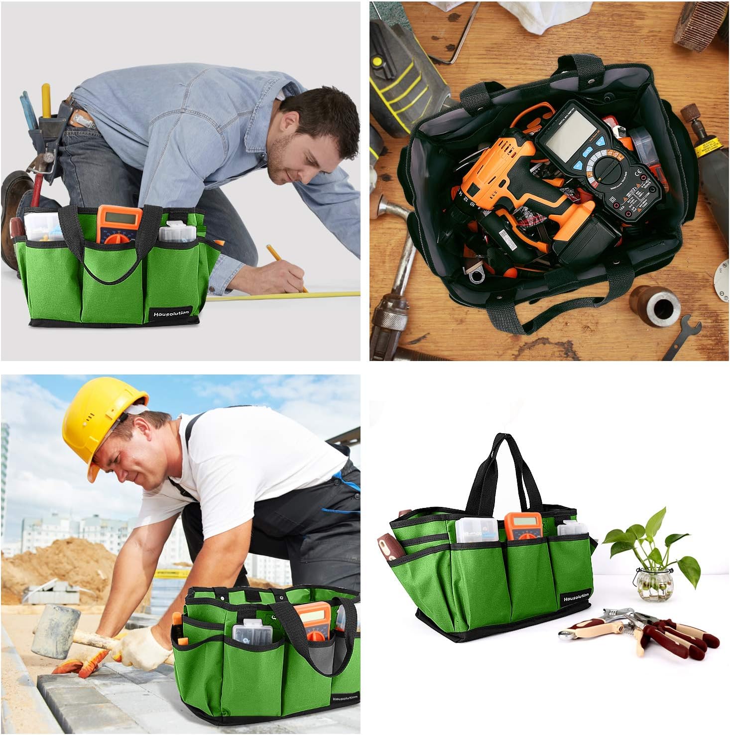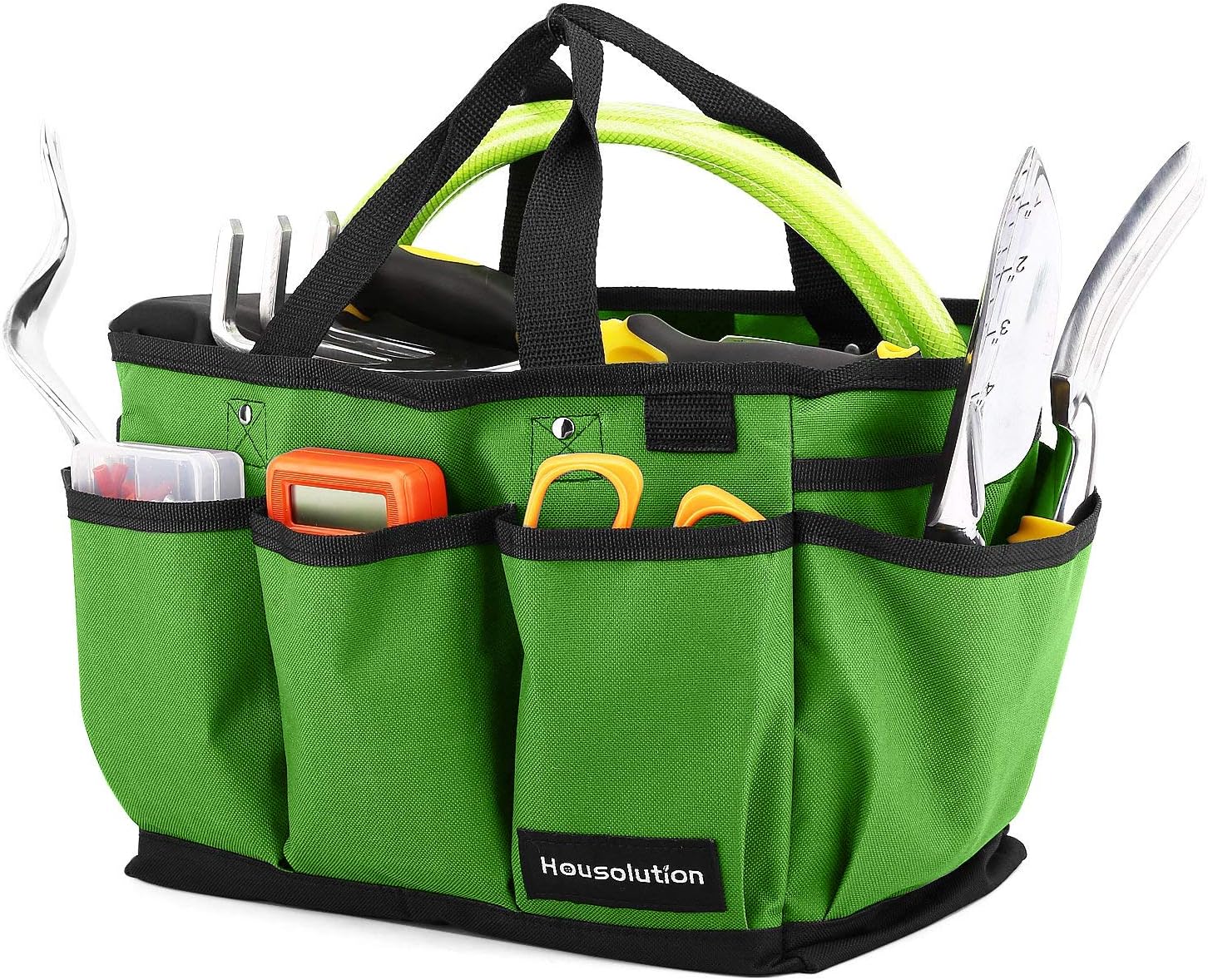 Housolution Gardening Tote Bag, Deluxe Garden Tool Storage Bag and Home Organizer with Pockets, Wear-resistant & Reusable, 12 Inch, Green