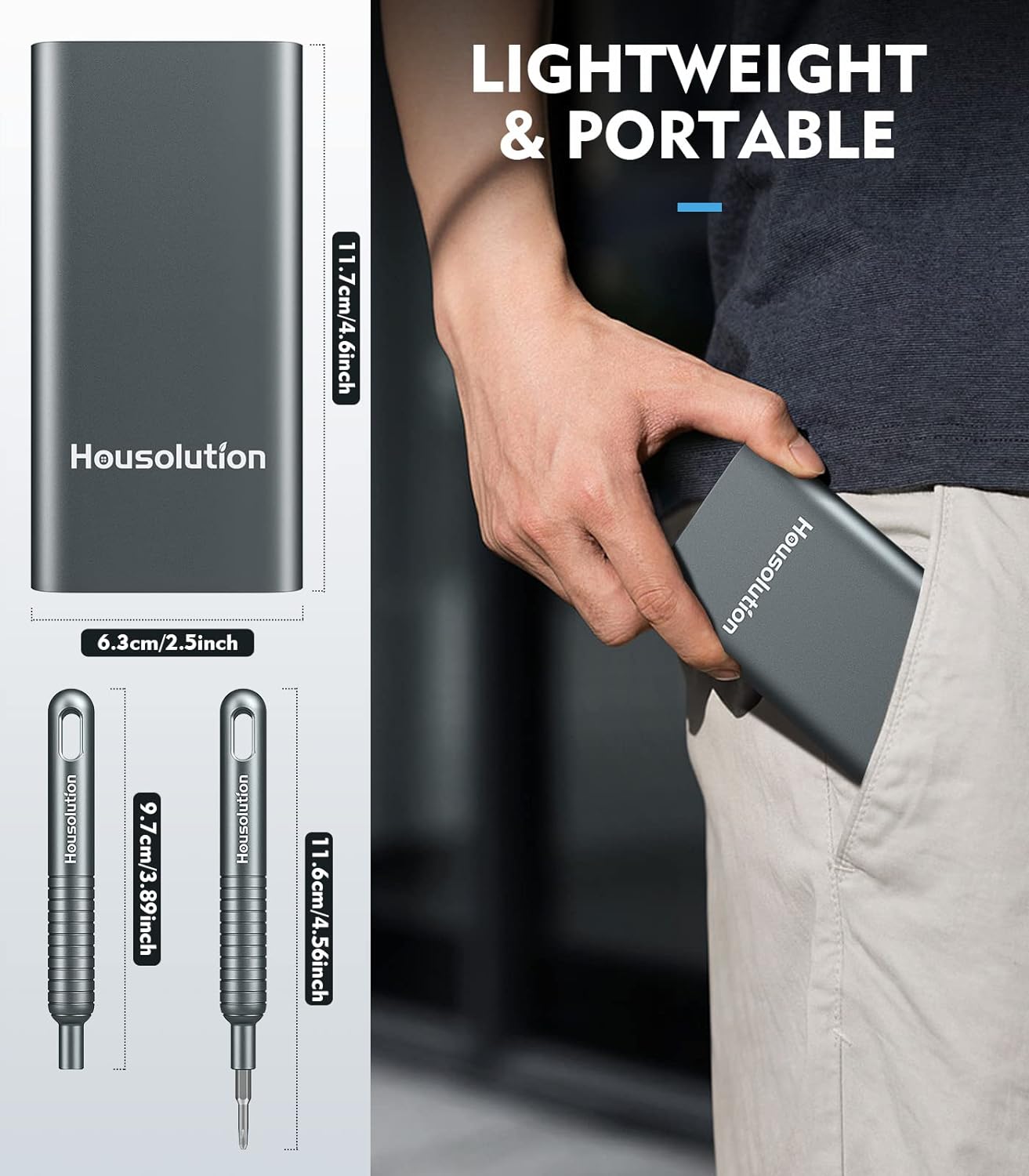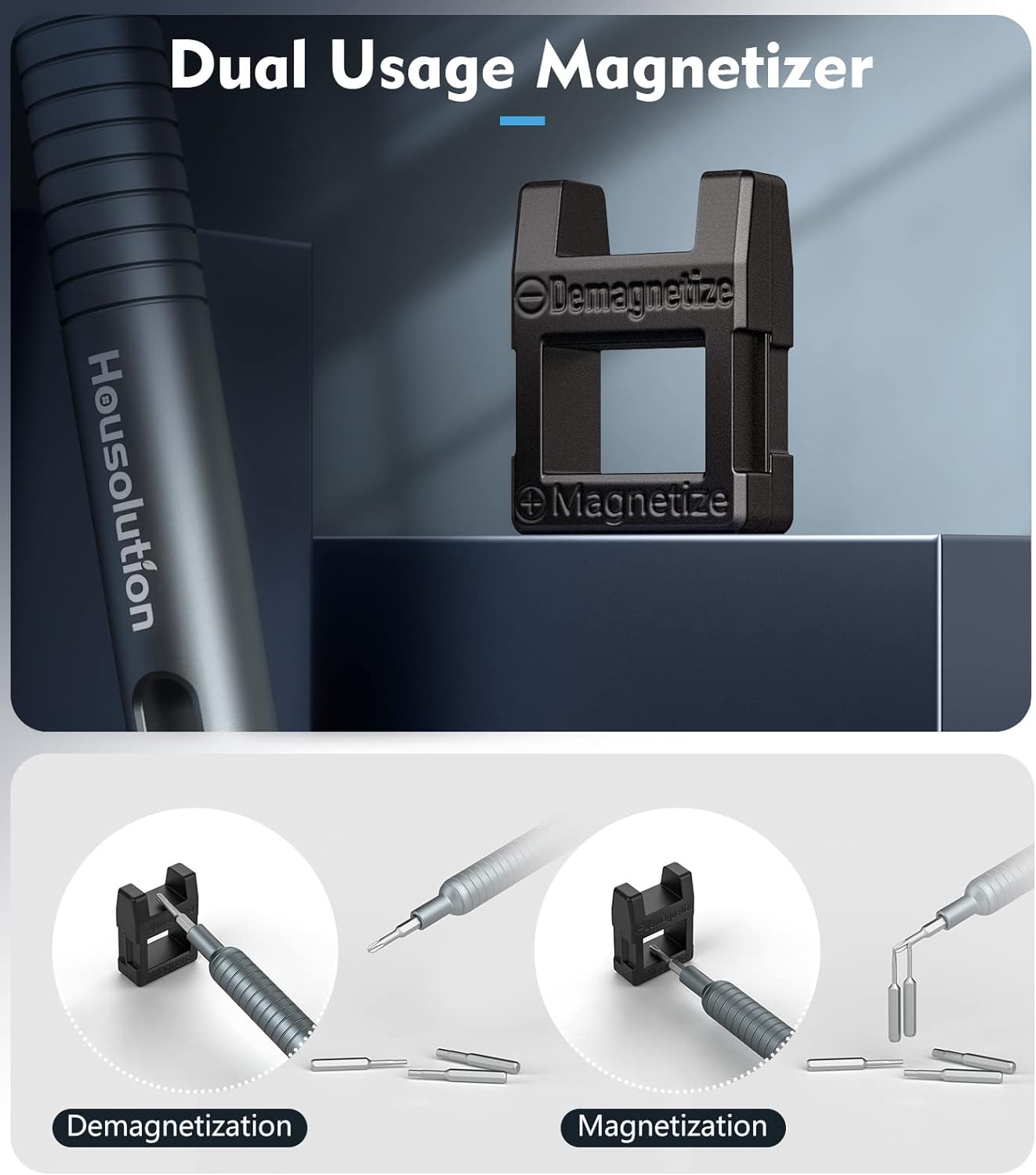 - 【What You Get】1 × Cordless Precision Screwdriver Kit; 30 × Magnetic Precision Bits; 1 × Magnetizer & Demagnetizer Device; 1 × Magnetic Storage Cases. Our micro screwdriver set with high-grade aluminum alloy material. Great gifts for men, handymen and DIY projects. It is a birthday or Christmas gift for men, men, fathers, boyfriends and women.